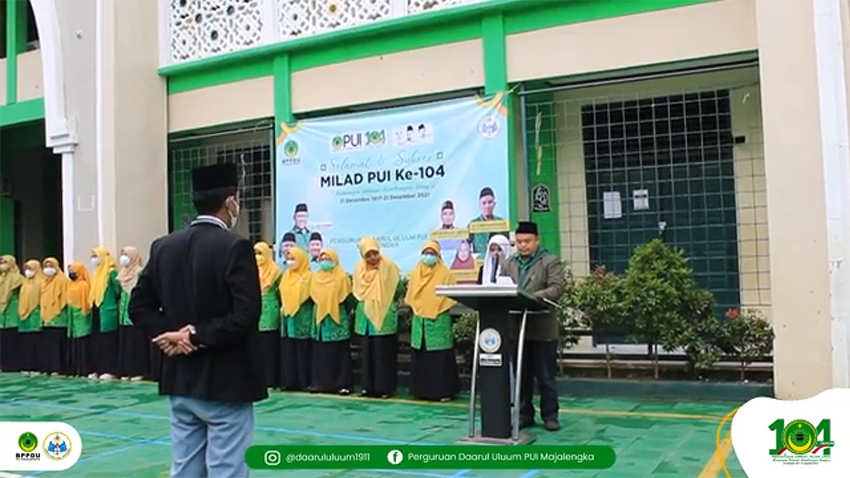 PUI.OR.ID, MAJALENGKA – Menyambut Milad Persatuan Ummat Islam (PUI) yang ke 104, yang jatuh pada Selasa, 21 Desember 2021, Daarul Uluum PUI Majalengka untuk pertama kalinya menyelenggarakan upacara Milad di tahun ini. Upacara diikuti dengan penuh khidmat oleh seluruh komponen Pendidik Tenaga Kependidikan (PTK) dan murid-murid Madrasah Tsanawiyah (MTs) dan Madrasah Aliyah (MA).