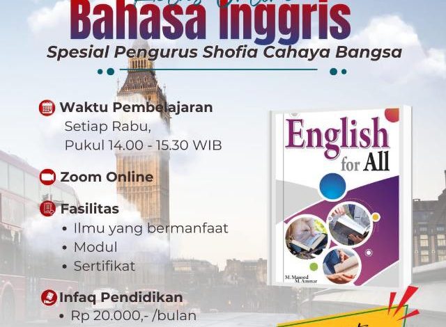 Sementara itu, Kelas Online Bahasa Inggris akan dimulai pada 9 Juli 2025 dengan level Basic Speaking sebagai tahap awal. Program ini berdurasi tiga bulan dan dijadwalkan setiap hari rabu pukul 14.00 WIB. Metode pembelajaran dirancang interaktif, menekankan pada praktik berbicara agar peserta lebih percaya diri menggunakan bahasa Inggris dalam konteks formal maupun informal. Peserta juga akan mendapatkan modul pembelajaran yang disusun secara sistematis untuk memudahkan pemahaman.