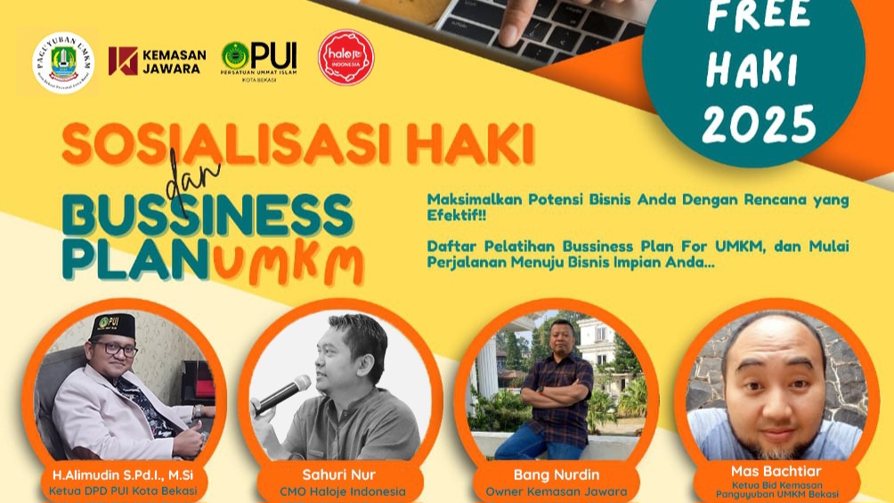 Bekasi — Persatuan Ummat Islam (PUI) Kota Bekasi kembali menunjukkan komitmennya dalam pemberdayaan masyarakat dengan menggandeng pelaku Usaha Mikro, Kecil, dan Menengah (UMKM) melalui program “PUI Bersama UMKM”. Program ini menghadirkan rangkaian Sosialisasi HaKI (Hak Kekayaan Intelektual) dan Business Plan for UMKM 2025 yang digelar di seluruh kecamatan se-Kota Bekasi mulai Juni hingga Juli 2025.