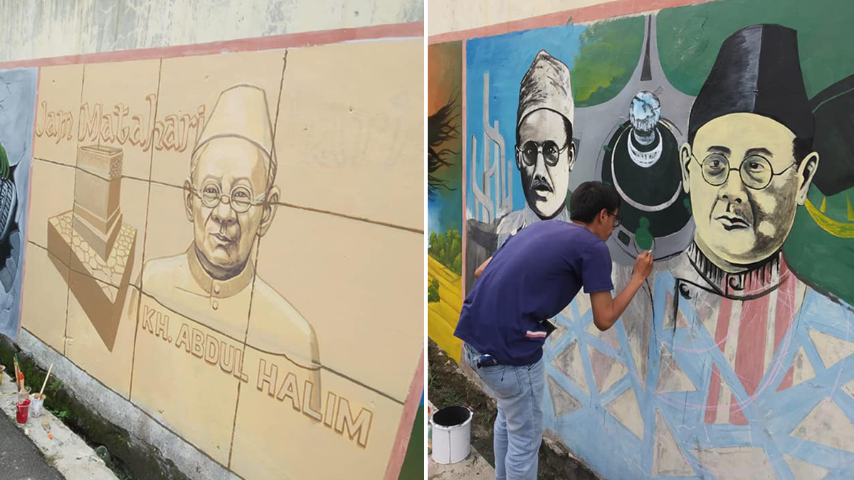 Bila beberapa waktu lalu kita dihebohkan oleh mural kritik pada pemerintah atas berbagai kebijakannya oleh beberapa pegiat mural, kali ini kita dicengangkan oleh aksi jenial komunitas mural asal Majalengka-Jawa Barat yaitu Peka Perupa Majalengka. Kali ini pelukis sukses menjalankan aksi membuat mural di tembok BTN Munjul, Majalengka-Jawa Barat. Kali ini yang dilukis adalah KH. Abdul Halim. Ada dua gambar Kiai Halim, sosok pendiri Ormas Islam Persatuan Ummat Islam (PUI), yang digambar dengan begitu indah pada kesempatan kali ini.