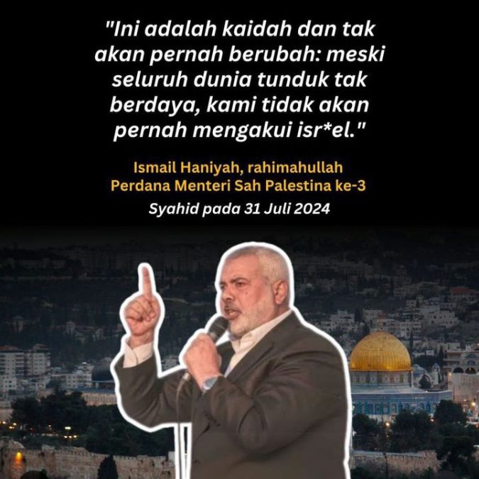 PUI.OR.ID, Jakarta – Pembunuhan Ismail Haniyeh, tokoh sentral perjuangan Palestina, di Teheran pada Rabu, 31 Juli 2024, memicu kecaman keras dari berbagai pihak, termasuk Pemuda Persatuan Ummat Islam (PUI). Dalam pernyataan resminya, Pemuda PUI menegaskan komitmen untuk melanjutkan perjuangan demi kebebasan Palestina.