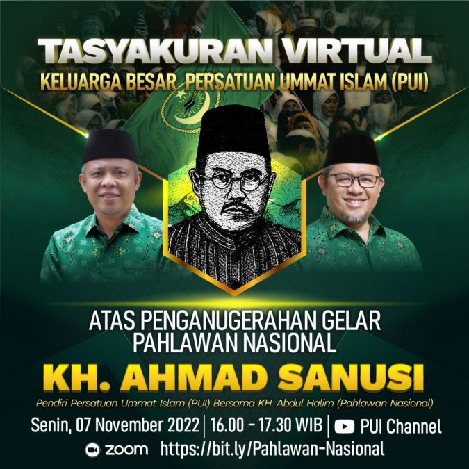 PUI.OR.ID, JAKARTA– Setelah Pemerintah RI resmi menganugerahkan gelar Pahlawan Nasional kepada KH Ahmad Sanusi pada Senin pagi, Dewan Pengurus Pusat PUI menyelenggarakan Tasyakuran Keluarga Besar Persatuan Ummat Islam (PUI) atas Penganugerahan Gelar Pahlawan Nasional KH Ahmad Sanusi pada Senin (07/11/22) sore harinya.