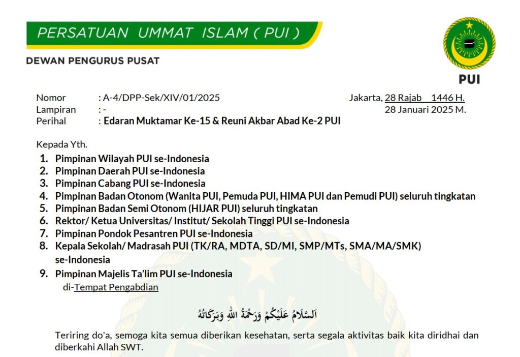DPP PUI menghimbau agar seluruh pengurus dan anggota di semua tingkatan, serta elemen pendidikan dan sosial, turut serta dalam perhelatan besar ini. Beberapa langkah yang perlu dipersiapkan antara lain: ✅ Persiapan fisik, mental, dan logistik untuk keberangkatan ke Jakarta. ✅ Pendanaan mandiri untuk transportasi, akomodasi, dan kebutuhan lainnya. ✅ Koordinasi intensif di setiap tingkatan organisasi guna memastikan keterlibatan maksimal. ✅ Pelaporan kesiapan peserta kepada Panitia Muktamar paling lambat 28 Februari 2025 melalui Call Center: 0896-7012-5283 (Sdr. Abdul Majid).