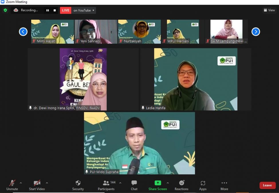PUI.OR.ID, JAKARTA – Dewan Pengurus Pusat Wanita Persatuan Ummat Islam (Wanita PUI) menggelar Webinar bertajuk “Memperkuat Ketahanan Keluarga Indonesia Menghadapi Ancaman Penyimpangan Seksual.†Acara ini terlaksana dalam dua sesi, sesi pertama pada hari Kamis tanggal 21 Oktober 2021 pada jam 09.00-12.00, dan sesi kedua pada hari Kamis 28 Oktober 2021 pada jam 08.30-10.30.